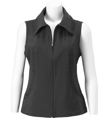 EP Pro Women's Zip Front Vest with Ruching Sleek seaming with a ruched collar and seams make this fashionable EP Pro Women's Zip Front Vest a staple for seasons to come. Fashion and technology come together in this beautiful piece. Features: 84% polyester/16% spandex Full zip front Water-resistant