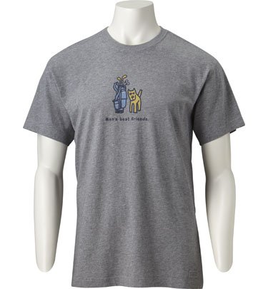 Life is Good Mens Mans Best Friend Crusher Tee Tried and true, the classic Life is Good Mens Mans Best Friend Crusher Tee crushes all challengers, boasting ultimate softness, a weathered look, and trusted durability. Play more golf and enjoy life more; its as simple as that. Additional features: Tee reads: Mans best friends. Relaxed fit 100% cotton Jake Face print at back neck DO WHAT YOU LIKE. LIKE WHAT YOU DO. locker patch at bottom