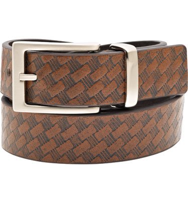 Snake Eyes Mens Embossed Tread Belt The Snake Eyes Mens Embossed Tread Belt is a 30mm wide genuine leather belt with brushed nickel hardware. The texture and style is perfect for a day in the office or a day on the course. When buying a belt, you should choose one that is two inches larger than your pant waist size. For example, if you wear a size 34 pant, you should purchase a size 36 belt.